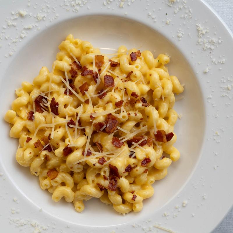 Tender cavatappi pasta tossed in our velvety house cheese sauce and generously topped with crispy bacon pieces.