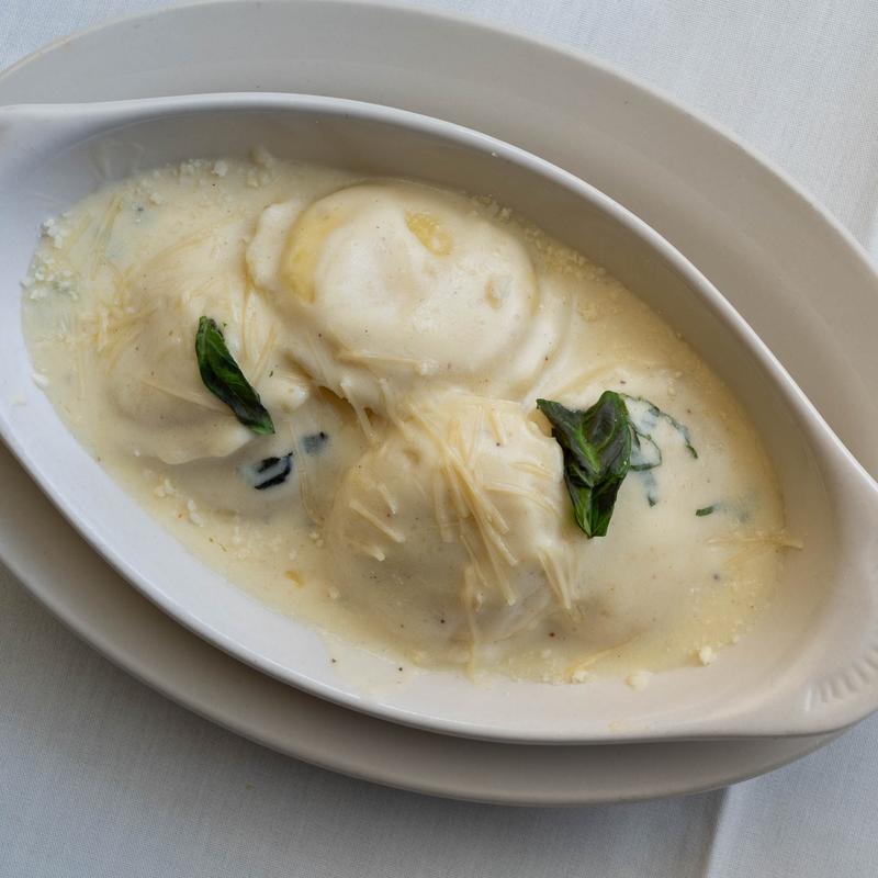 Pasta filled with a blend of ricotta, romano, parmesan, mozzarella, and Italian spices, topped with fresh basil and a choice of red or white sauce | Beef Ravioli - $17.99